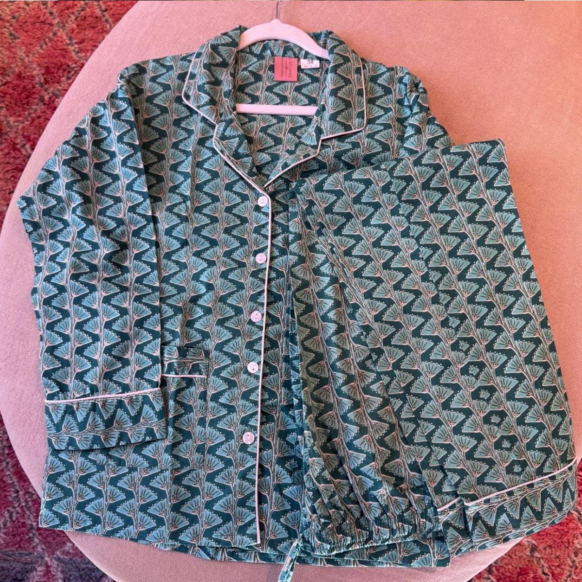 Pijama largo de algodón con estampado, confeccionado de forma artesanal en la India.